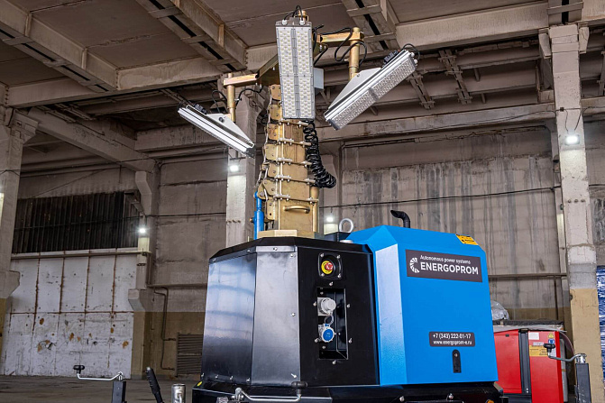 Осветительная мачта с панелью управления на базе контроллера Deep Sea (Великобритания), двигатель Kohler (США)